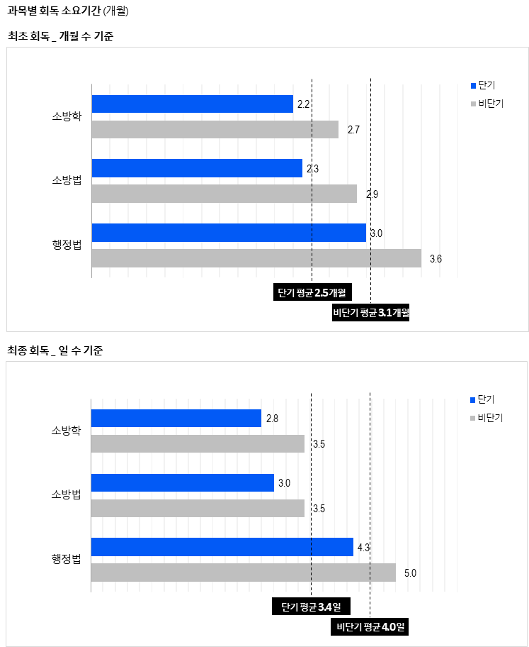 특히, 단기 합격생들은 소방학 2.8일, 소방법 3.0일, 행정법 4.3일로,
