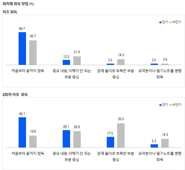 2회독 이후에는 꼼꼼하게 정독하는 비율이 49.1%로 감소하는 대신,