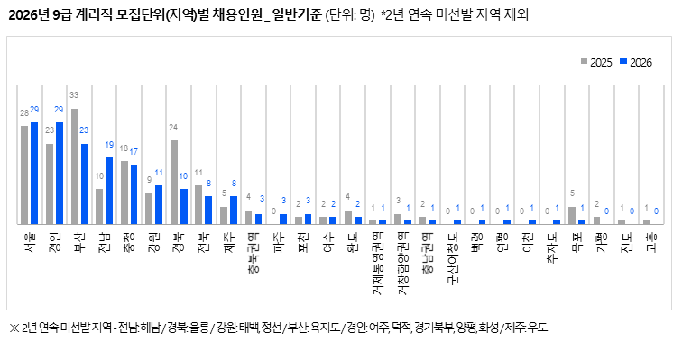 22026년 9급 계리직 공채에서 수험생들이 특히 유의해야 할 점은 일부 지역의 채용 공백이다.