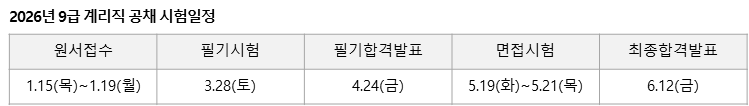 2026년 9급 계리직 공개채용 시험은 1월 15일 원서접수를 시작으로 3월 28일에 필기시험이 실시된다.